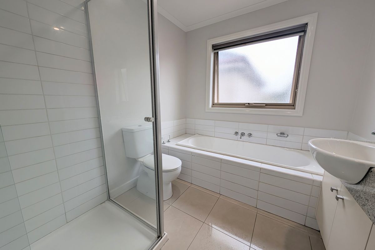 - Bathroom comprising shower, bath, single vanity & toilet
