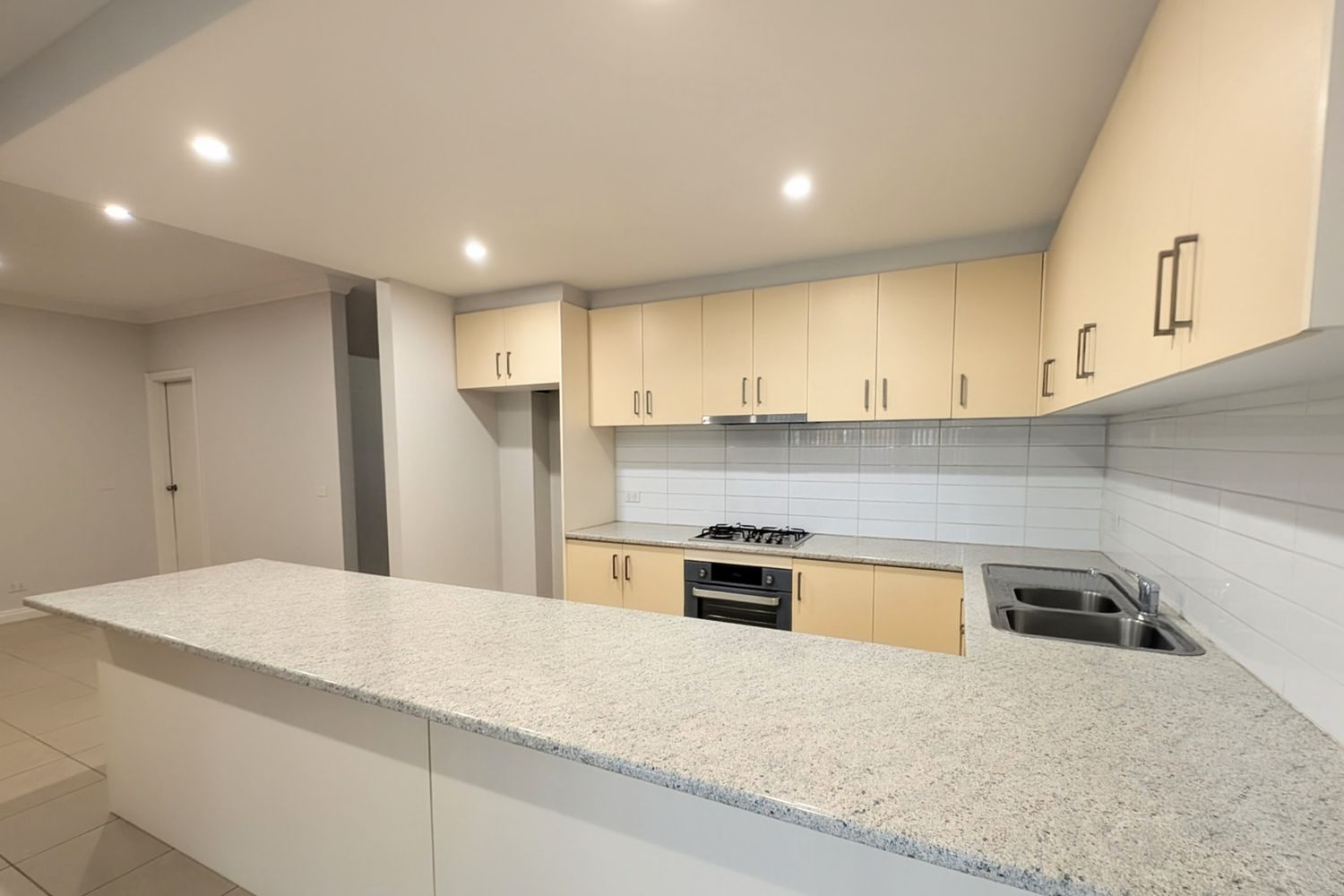 - Kitchen with gas cooktop, wall oven and dishwasher